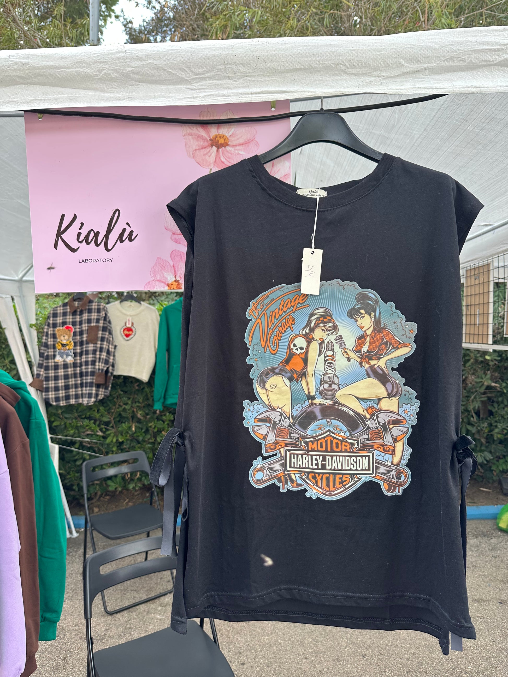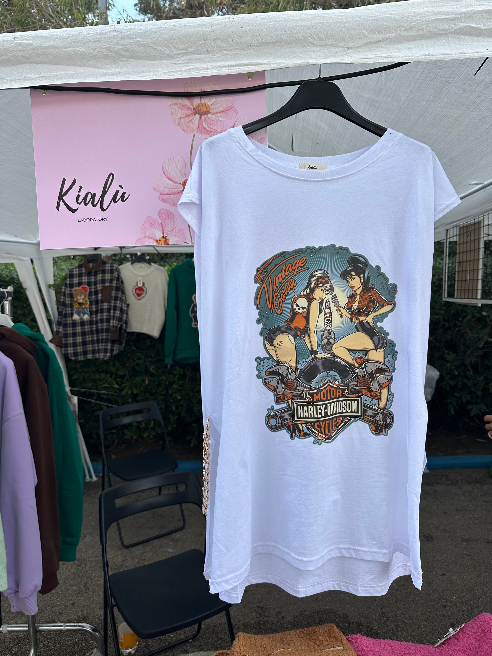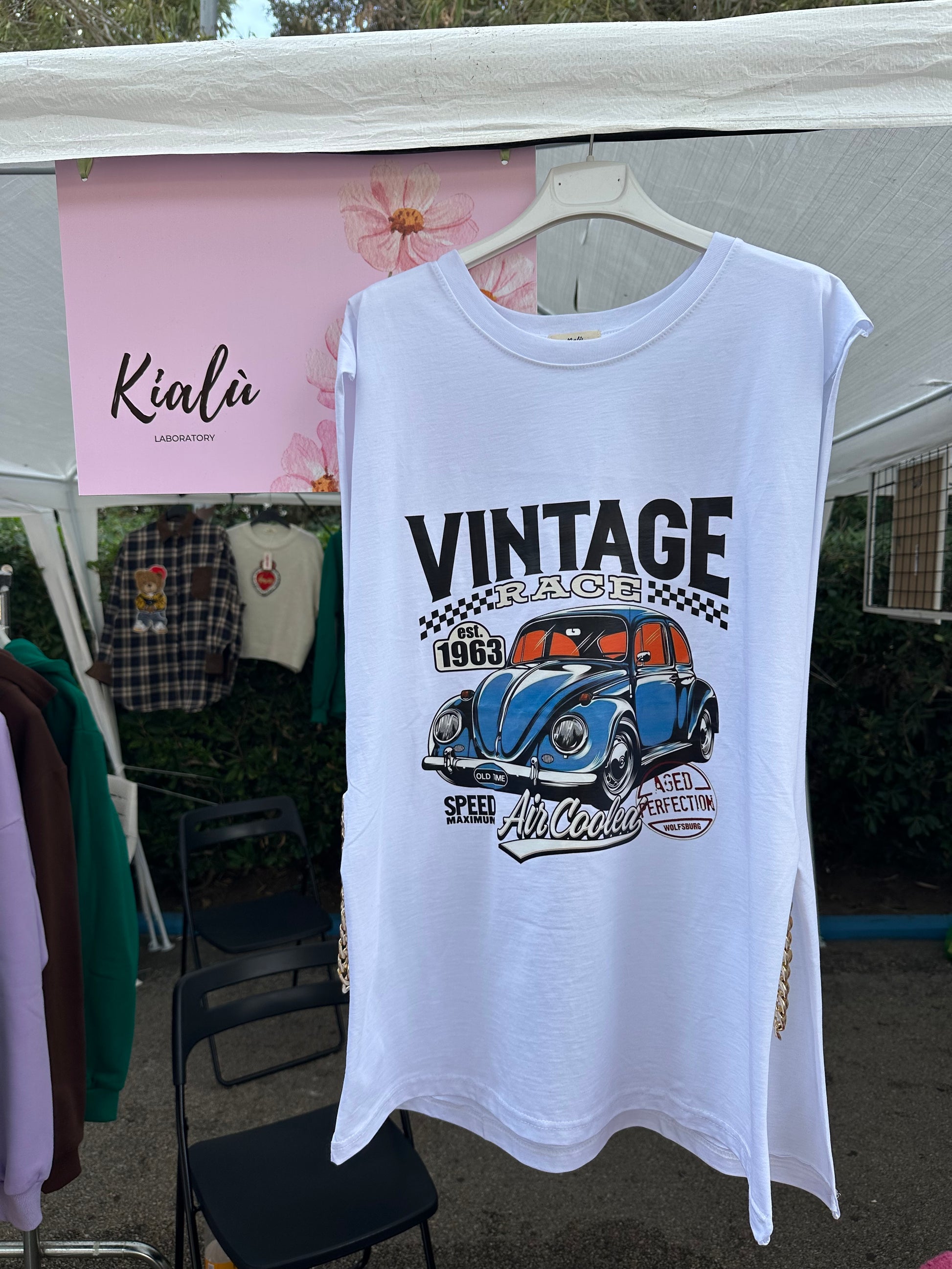 Canotta lunga con stampa. Catene laterali o tessuto in velluto.